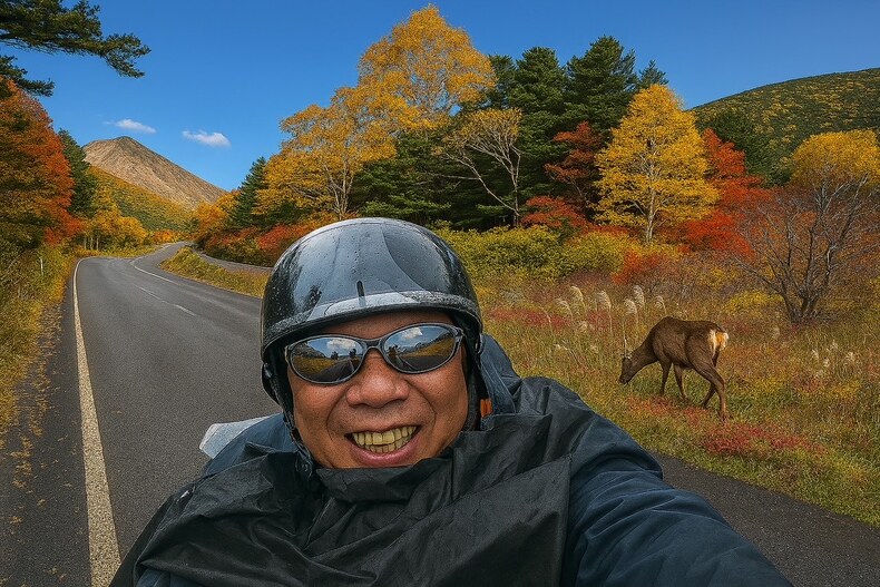 会津磐梯山は、すっかり秋でした。寒い!気温13度 標高1600メートルを超える磐梯山ドライブウエイの紅葉は美しい。写真をパチリ。この写真を元に、AIに絵を描かせた。なんとも、いい構図の秋の絵が出来上がった。なんと、その場にいない鹿まで付いている。熊なら怖いな。